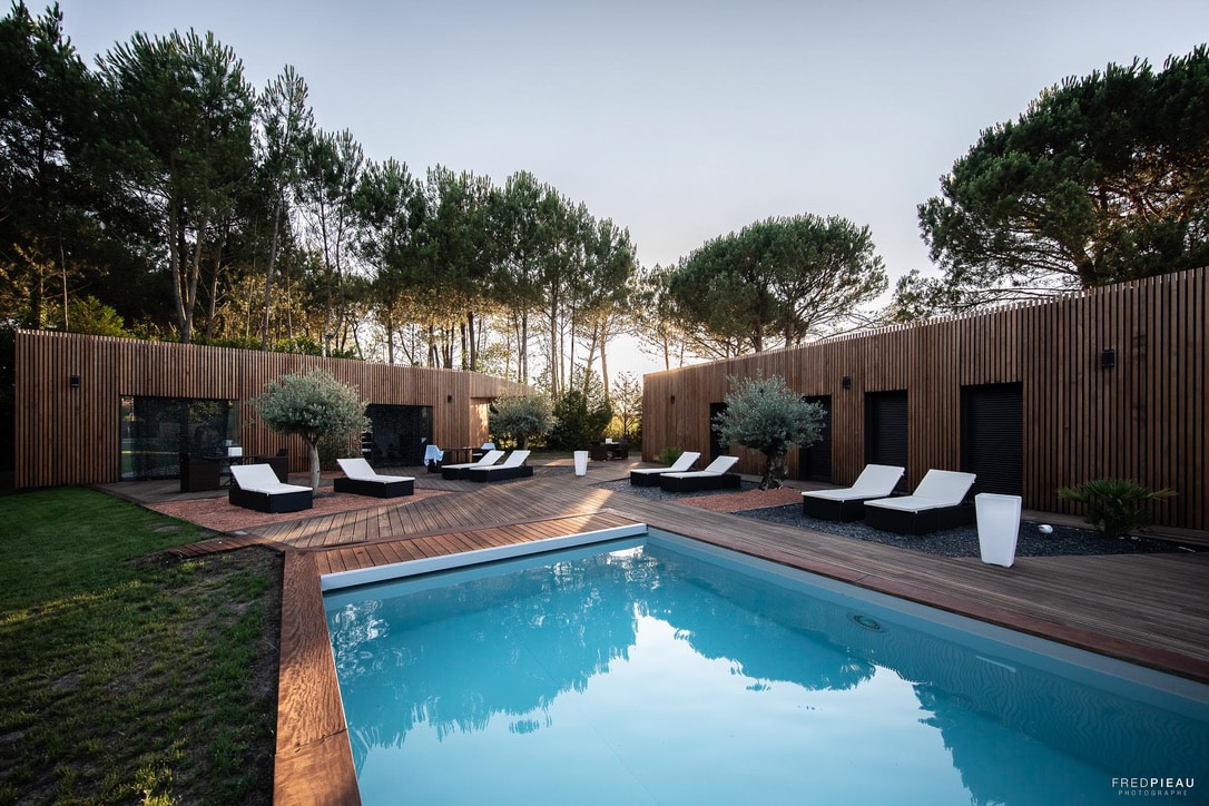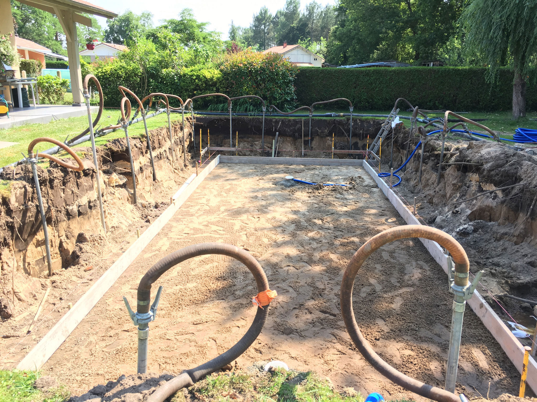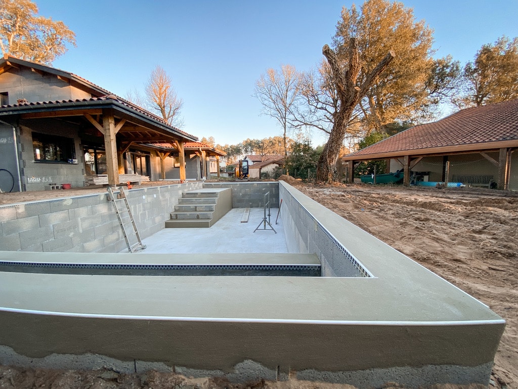 La piscine en béton armé est spécifiquement appropriée à la côte landaise, notamment dans une zone allant de Messanges à Mimizan, car elle est adaptée à la nature des sols. Ceux-ci sont souvent sablonneux, avec une nappe phréatique affleurante qui peut occasionner un risque important.